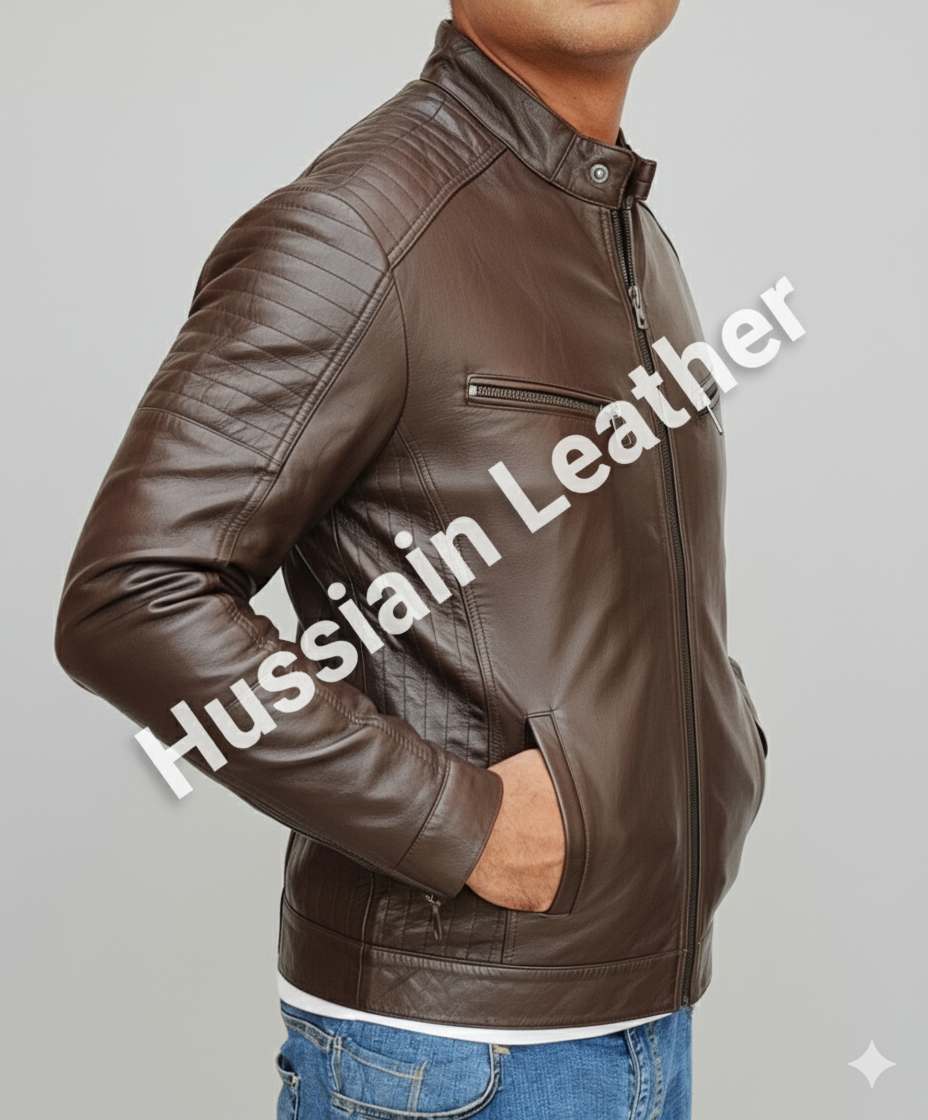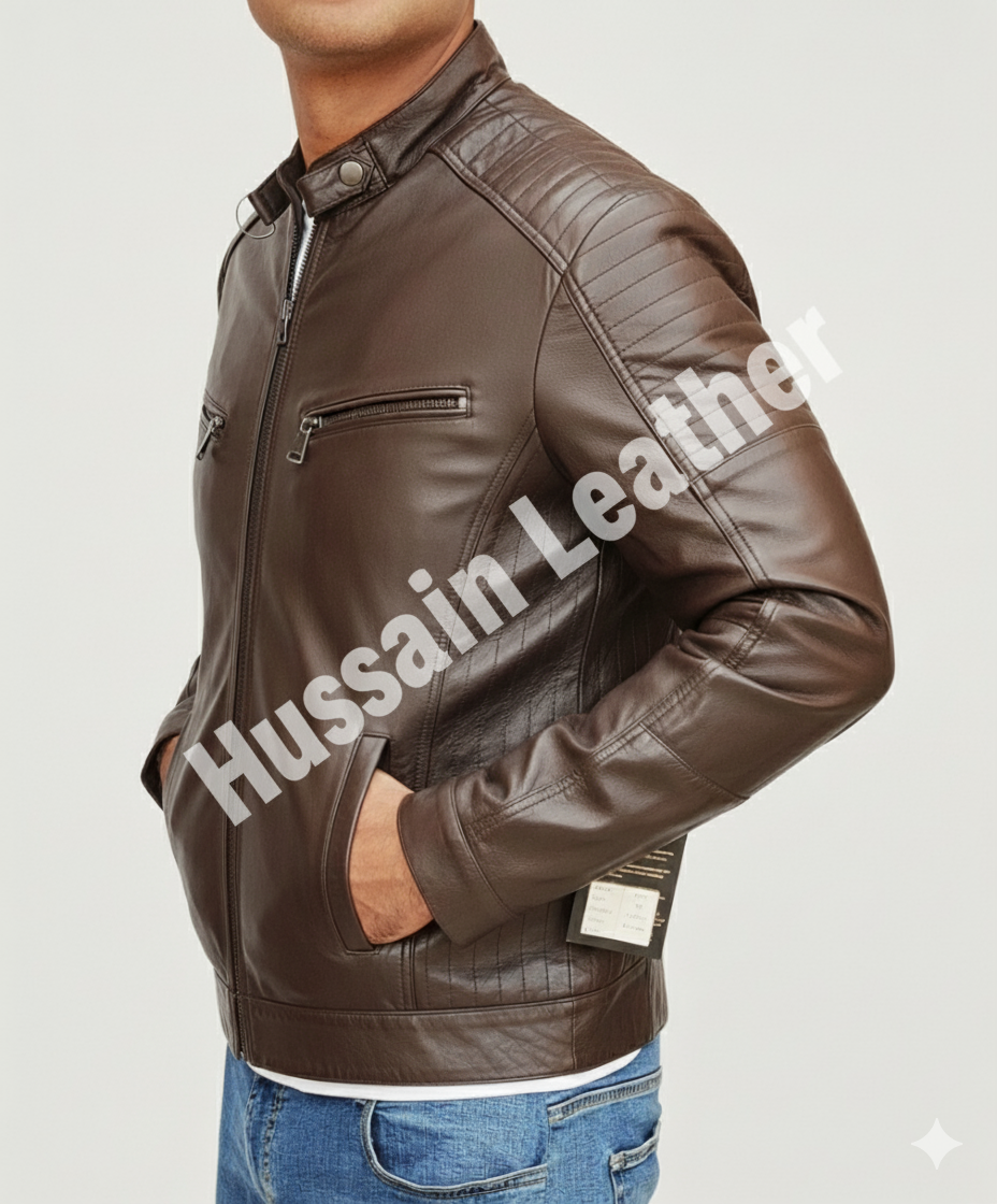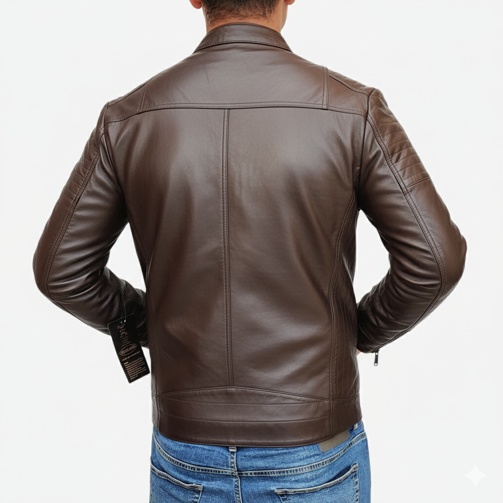 Elevate your wardrobe with this premium brown lambskin jacket.